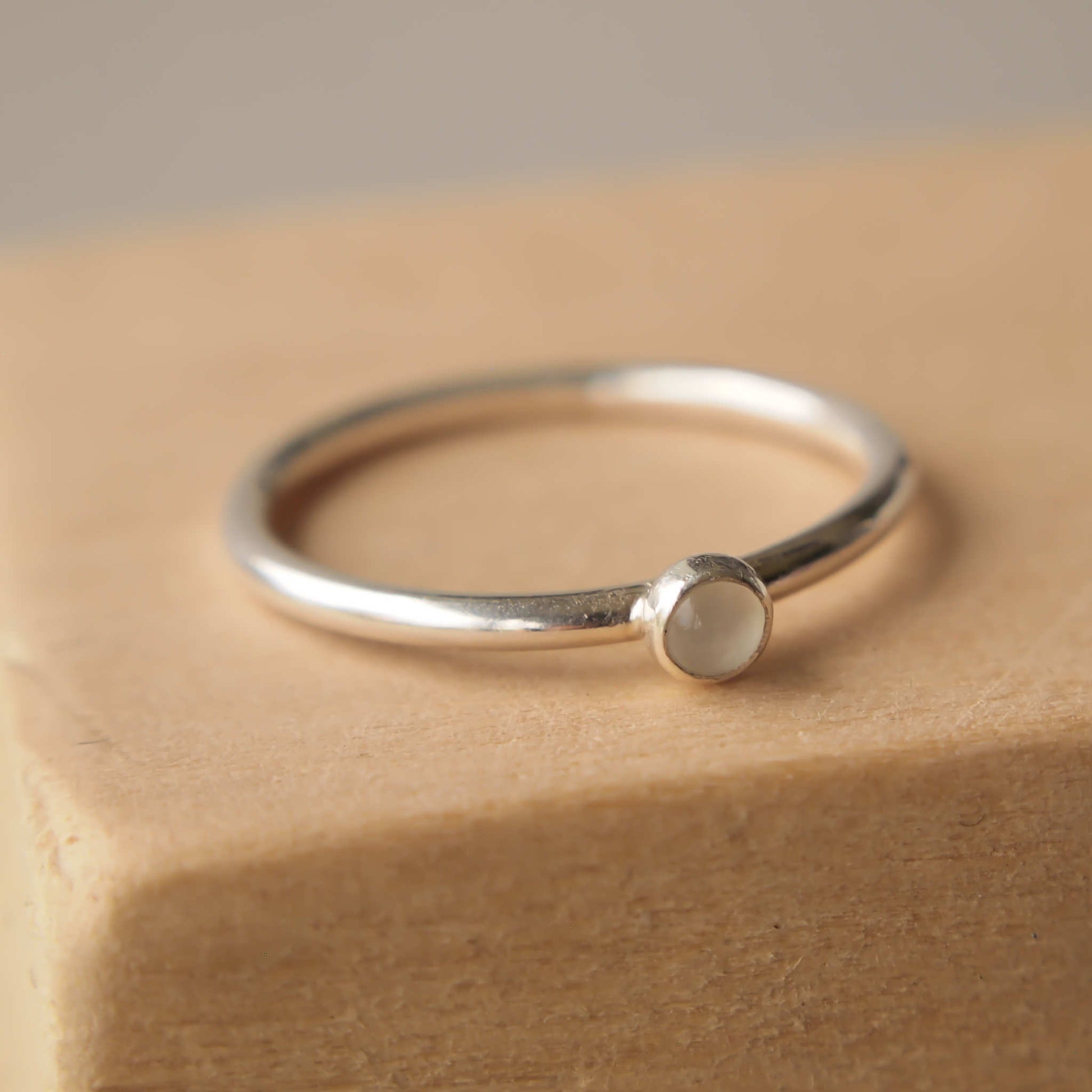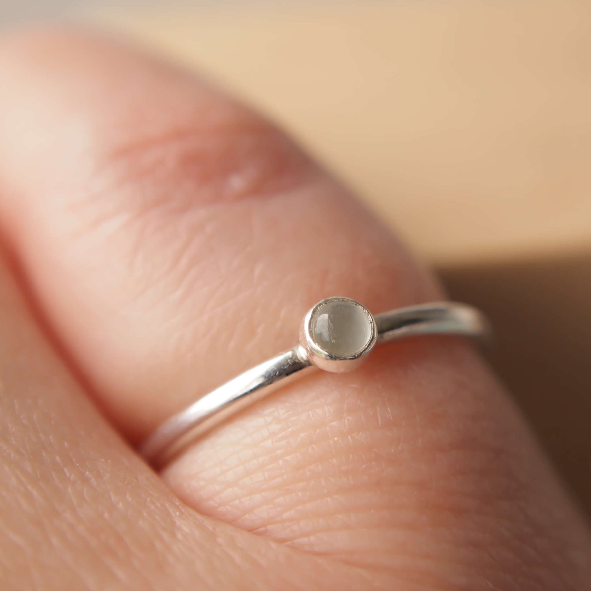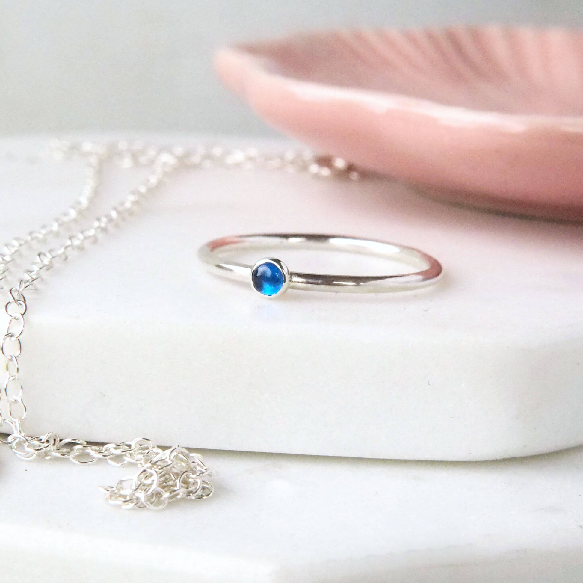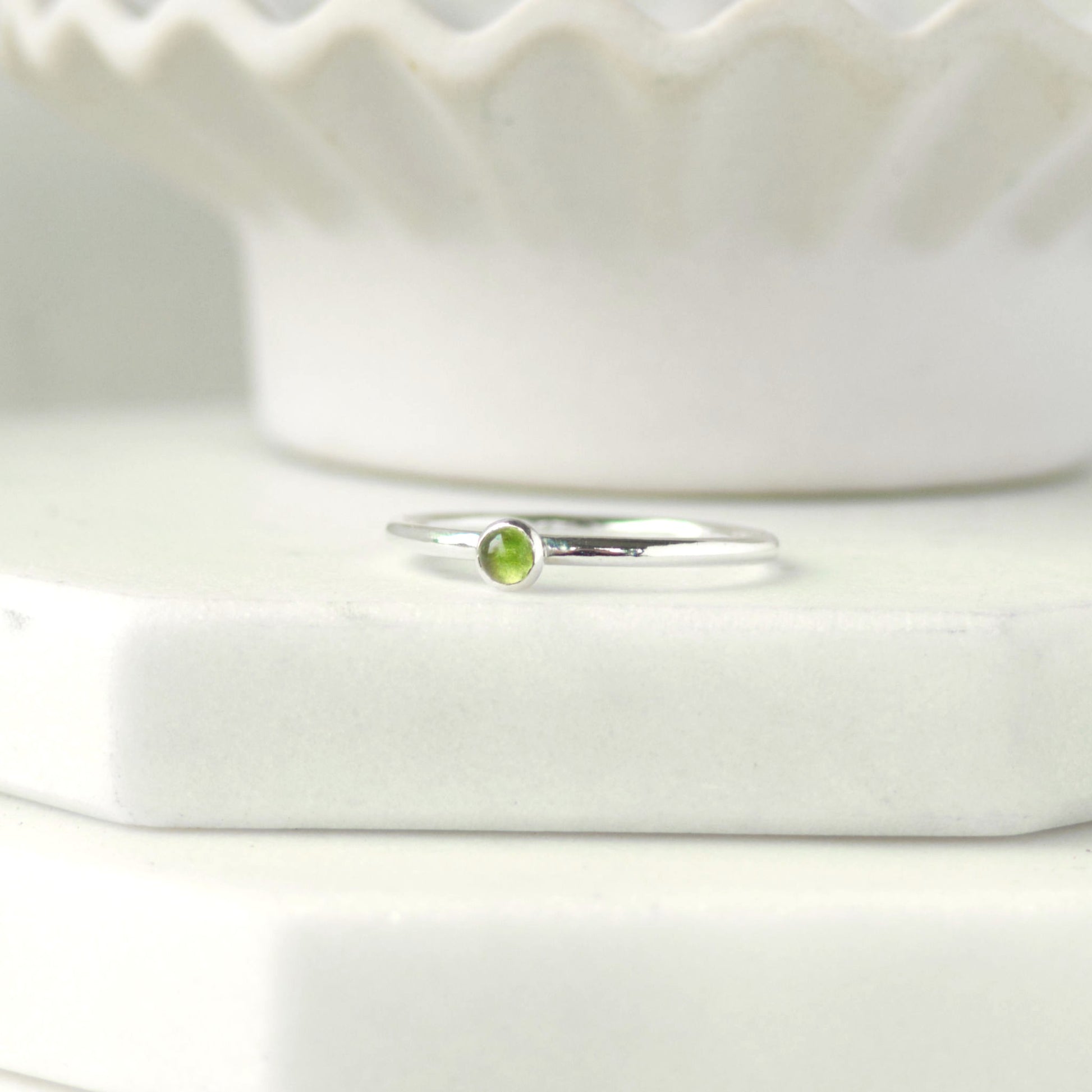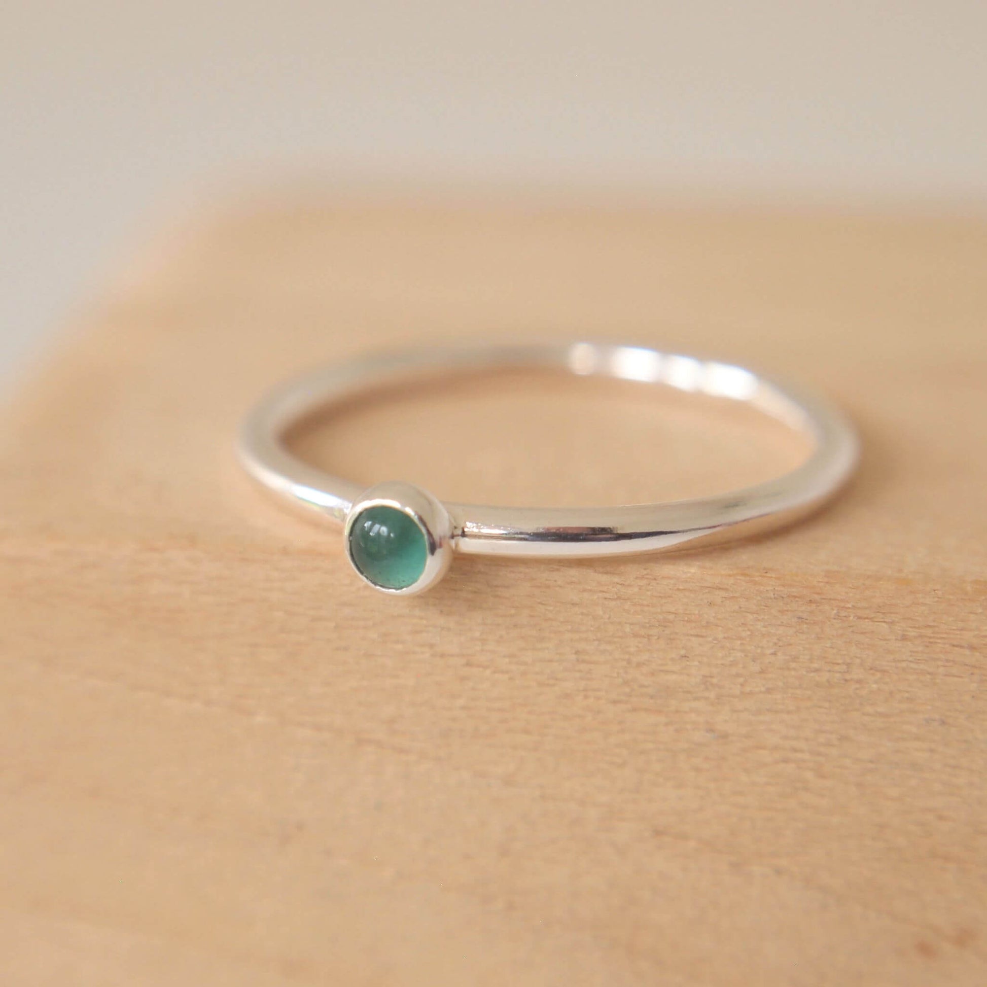 The ring is Sterling Silver and has a 3mm gemstone cabochon carefully set into the silver. A simple ring that is beautiful on its own, or pair it with more gemstone rings to create a meaningful set truly personal to you.