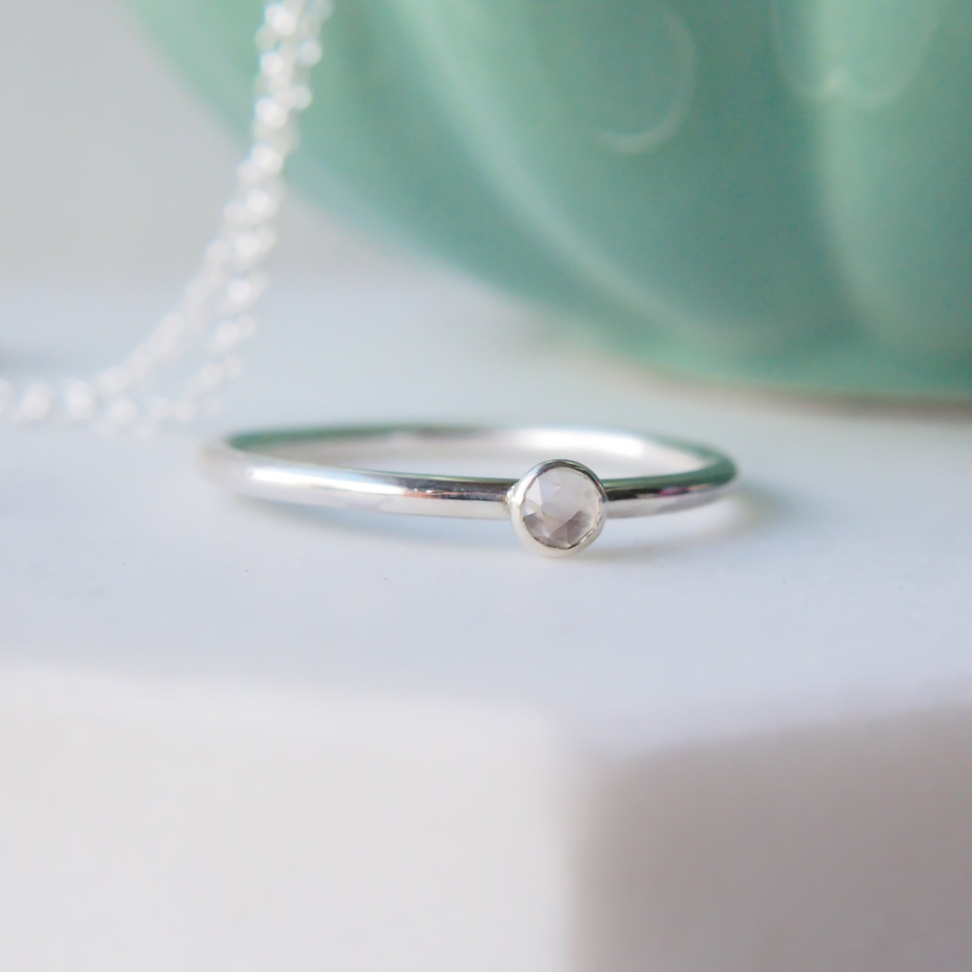 Sterling Silver Birthstone Stacker rings - A perfect minimal gemstone ring with the birthstone of your choice.